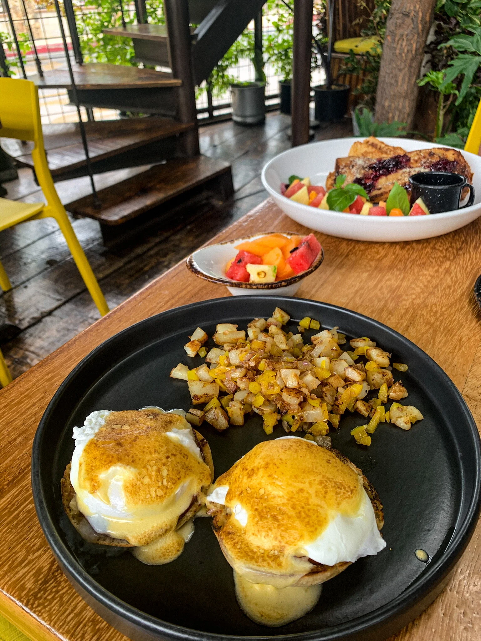 Sunday brunch was the next to-do on our post-quarantine fun list. Given most places are still not open and normally closed on Sundays anyway, we had a hard time finding a new spot. So we stumbled into Outpost, a favorite for evening cocktails, and tried their breakfast. We didn’t have to worry about socially distancing as we were the only diners, which lead to great service and a super tasty meal. Hibiscus mimosas, fruit, brioche french toast, eggs Benedict — we’ll be working this weekend off all week.