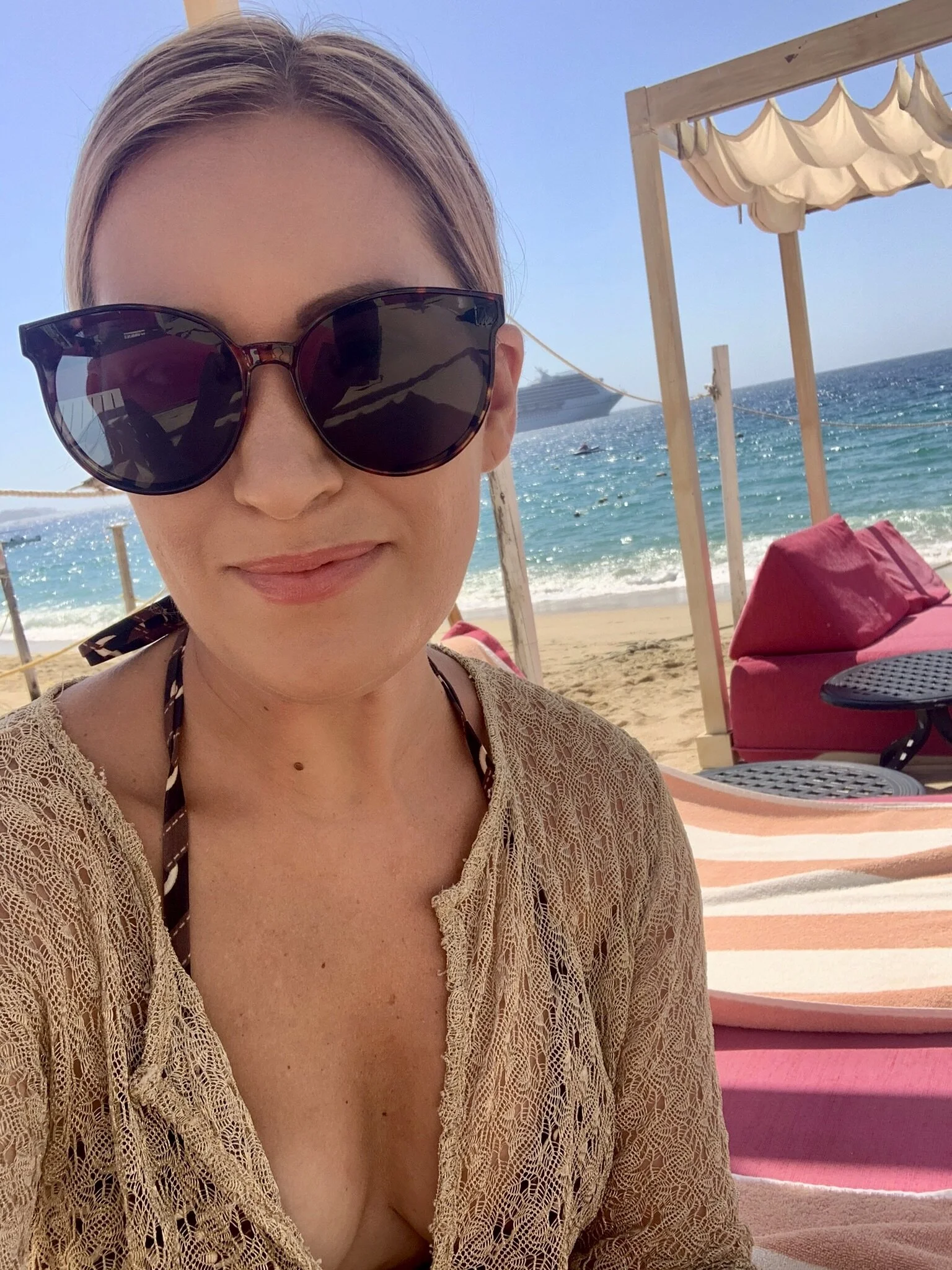 Medano Beach was on the approved list of 9 beaches in Los Cabos allowed to reopen, opening at 10am and closing at 6pm to the public. On Saturday we grabbed a reservation for a day bed at our favorite spot, Cachet, with our favorite waiter, Edilberto. 2x1 skinny margs and fresh sushi on the beach was what we’d been craving the last 4 months, and boy did it all taste good.