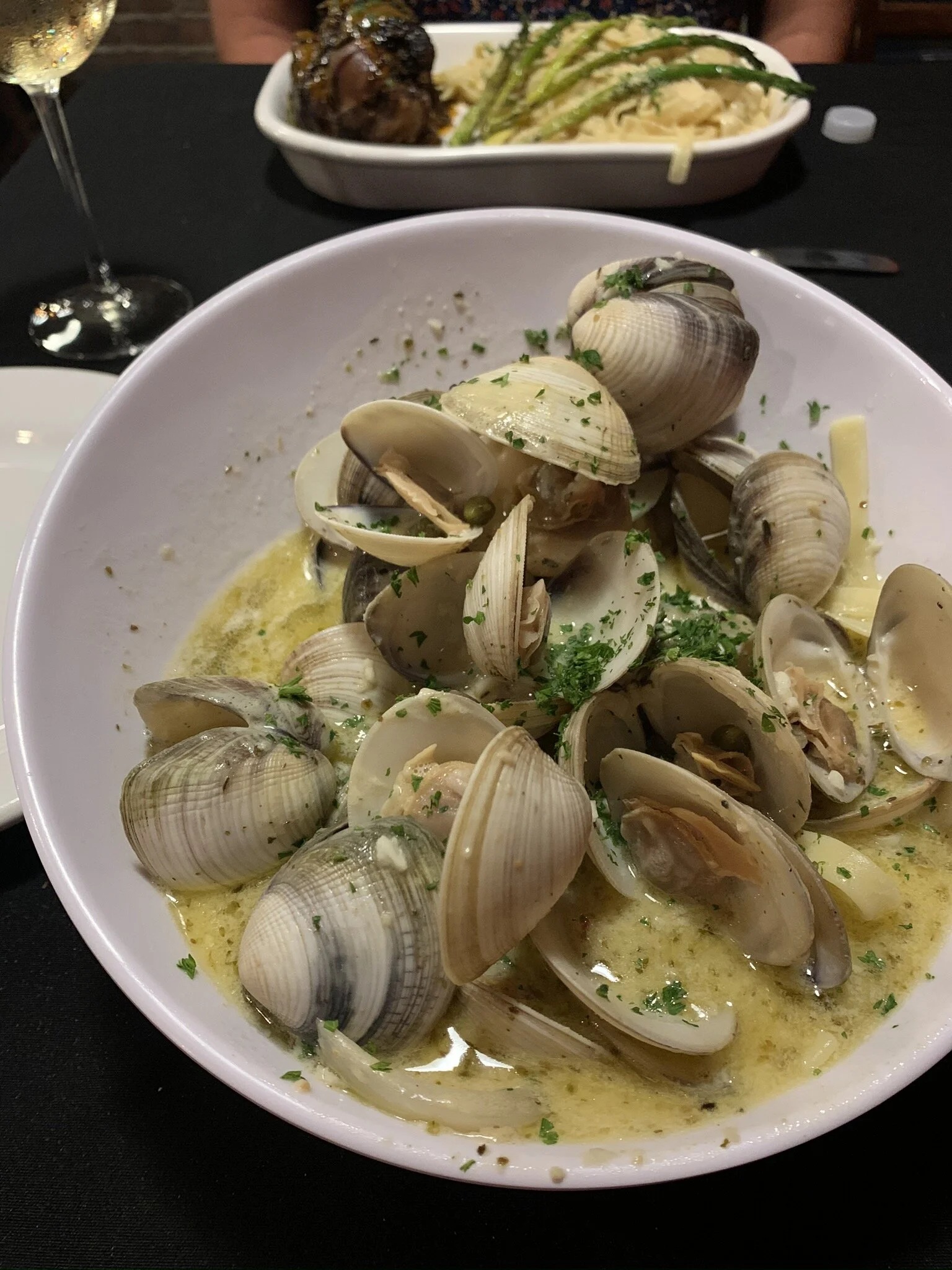The following weekend, we decided to try our first dinner out on the town (since February!). It’s been a minute since we dressed up, so the makeup went on, the button down came out and off we went to visit Salvatore G’s, a local Italian hot spot with a quaint outdoor patio. Indulging in vino, calamari, clams & linguine, and a ginormous pork shank left us with two food comas and a bed time of 10pm.